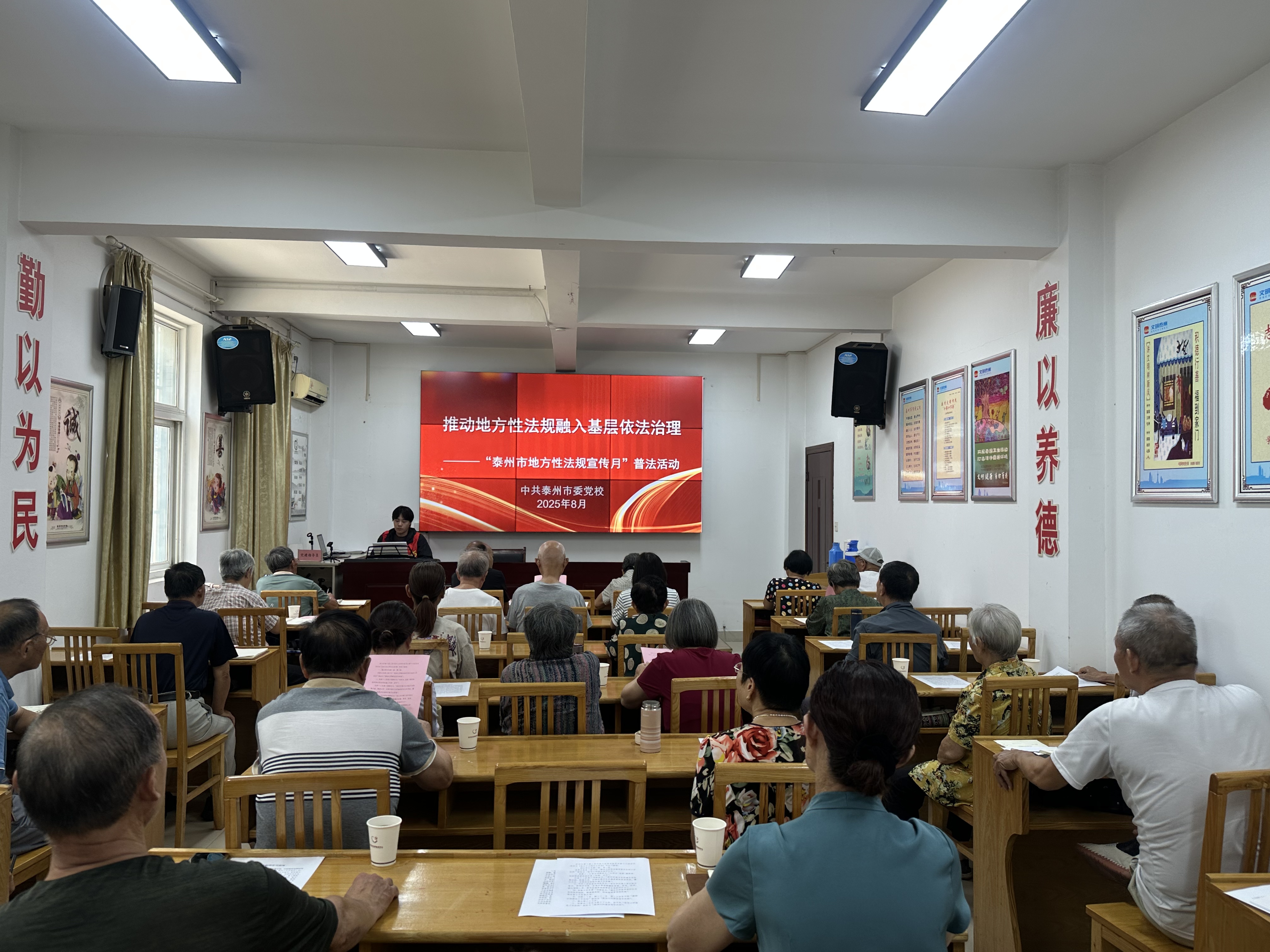 今年8月以来,市委党校围绕“推动地方性法规融入基层依法治理”主题,精心组织,广泛发动,扎实开展了泰州市“地方性法规宣传月”活动。