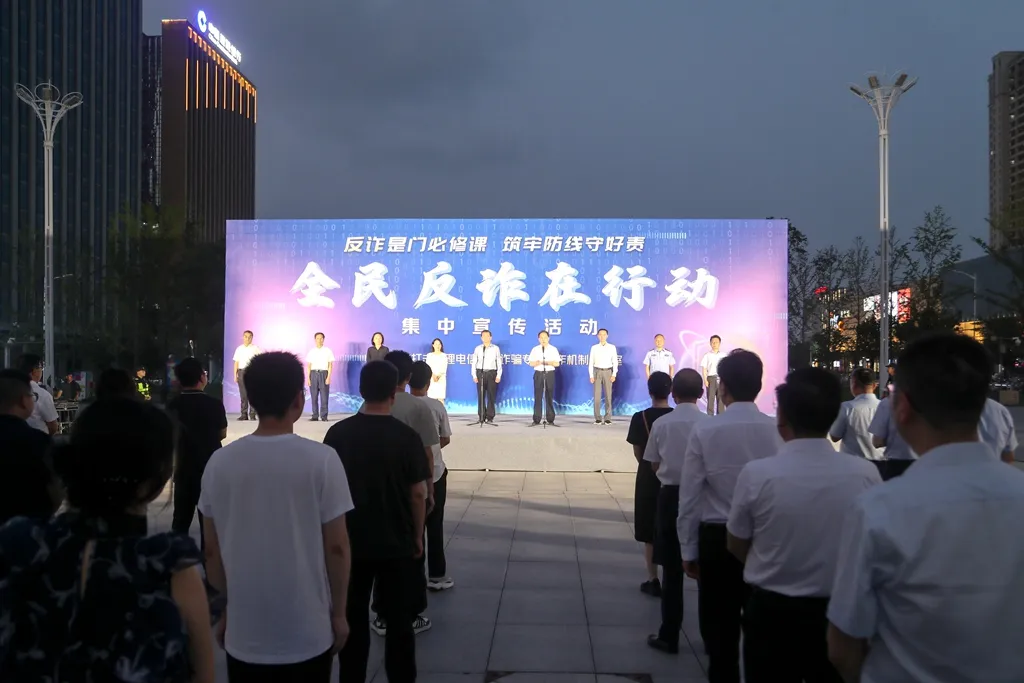 7月10日晚,市公安局在金融中心广场举行全民反诈在行动集中宣传活动启动仪式。