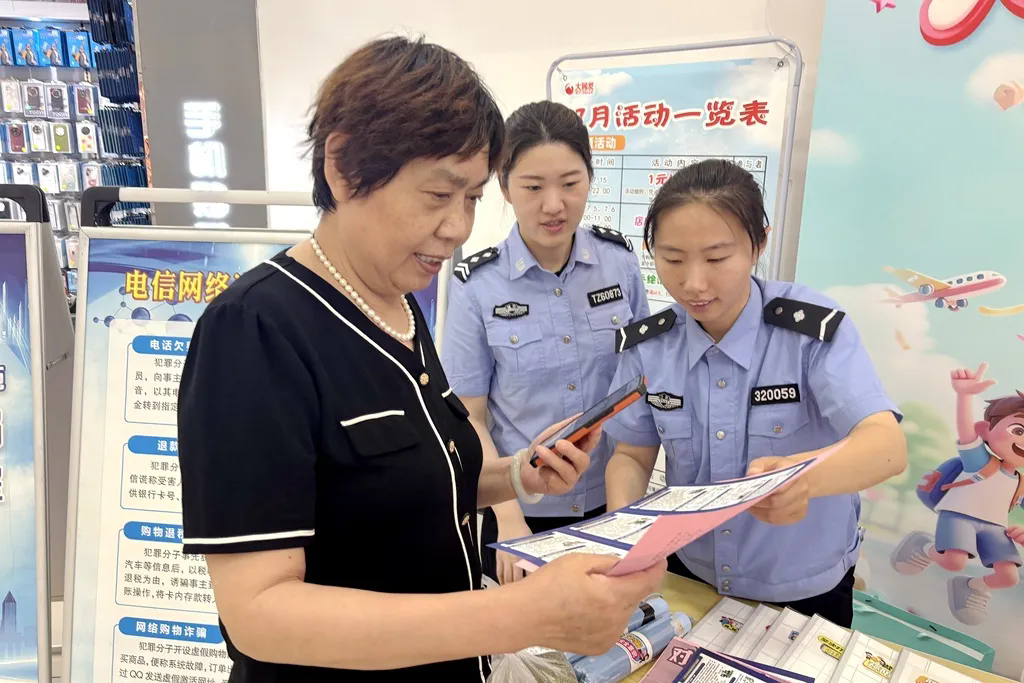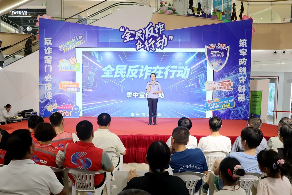 泰兴市公安局在鼓楼新天地购物中心开展“全民反诈在行动”集中宣传活动。